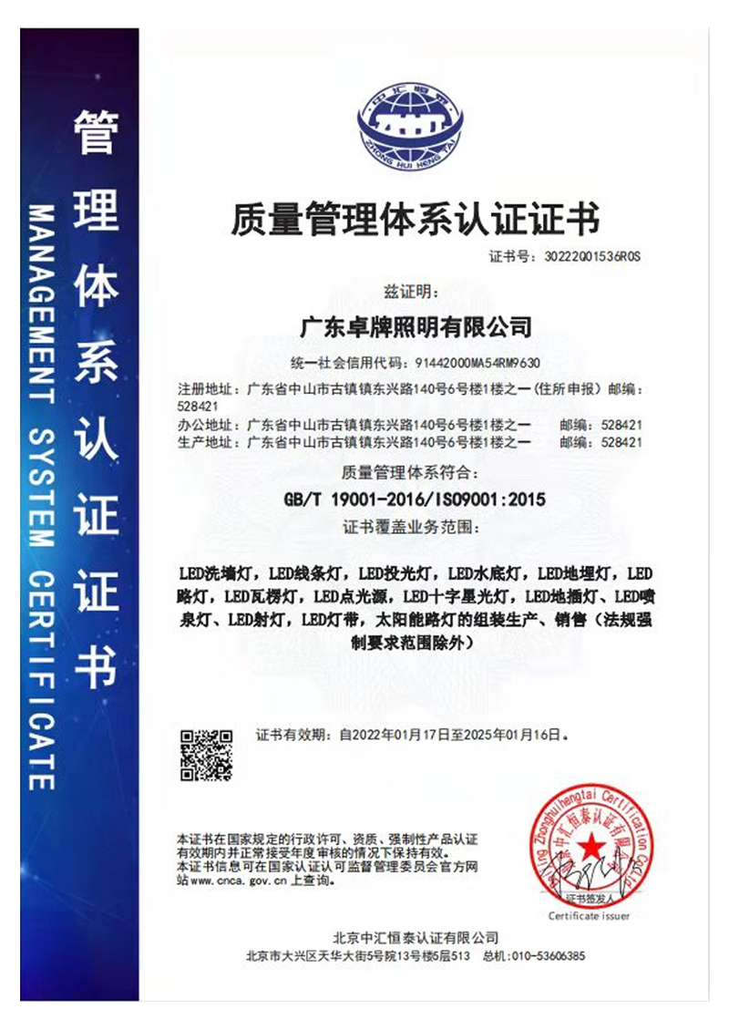 卓牌專注戶外照明產品生產,經過十多年積累,打造了一支經驗豐富的生產團隊。隨著中國工業5.0時代的發展,卓牌投入資金引入智能化生產設備,加快從制造到智造的速度,不斷增強產品的科技含量和綠色環保含量。